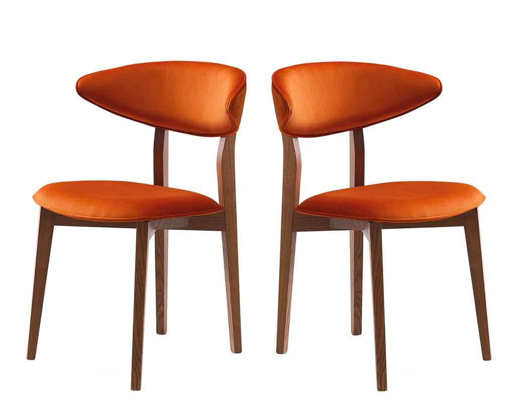 Ein Paar gepolsterte Stühle in modernem, zeitgenössischem Stil.