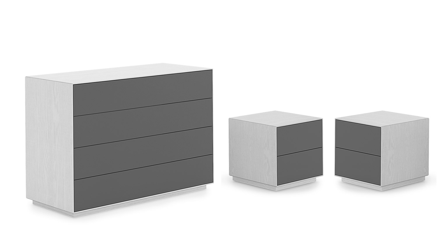 Möbelgruppe für einen modernen und minimalistischen Schlafbereich.
