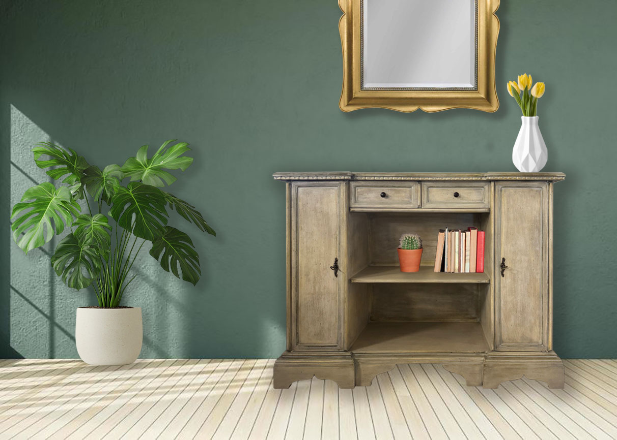 Wunderschöne und elegante Anrichte im klassischen, antiken Stil, ideal für klassische und charmante Umgebungen, die Geschichten und Traditionen vergangener Zeiten erzählen.