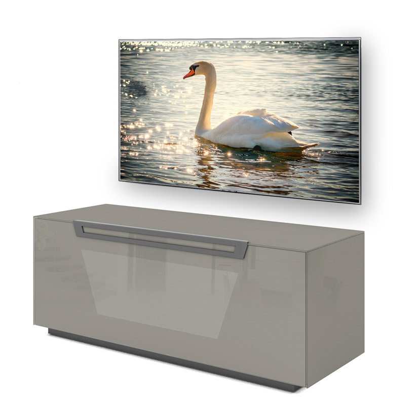 Die Besonderheit dieses Schranks ist das "Active door"-System, das die Signale der Fernbedienung durchlässt, auch wenn die Tür geschlossen ist.