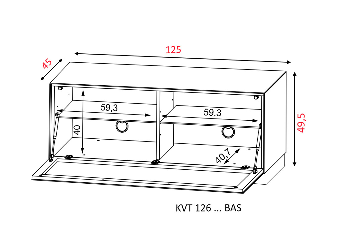Die hohe Funktionalität wird durch die 3 Innenfächer gewährleistet, von denen jedes über einen höhenverstellbaren Einlegeboden und eine Kabeldurchführung auf der Rückseite verfügt.