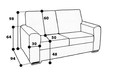 B: 208 cm H: 101 cm T: 90 cm