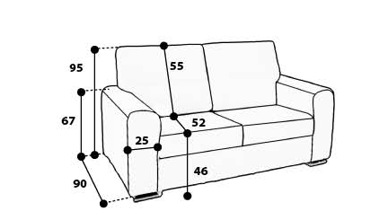 B: 208 cm H: 101 cm T: 90 cm