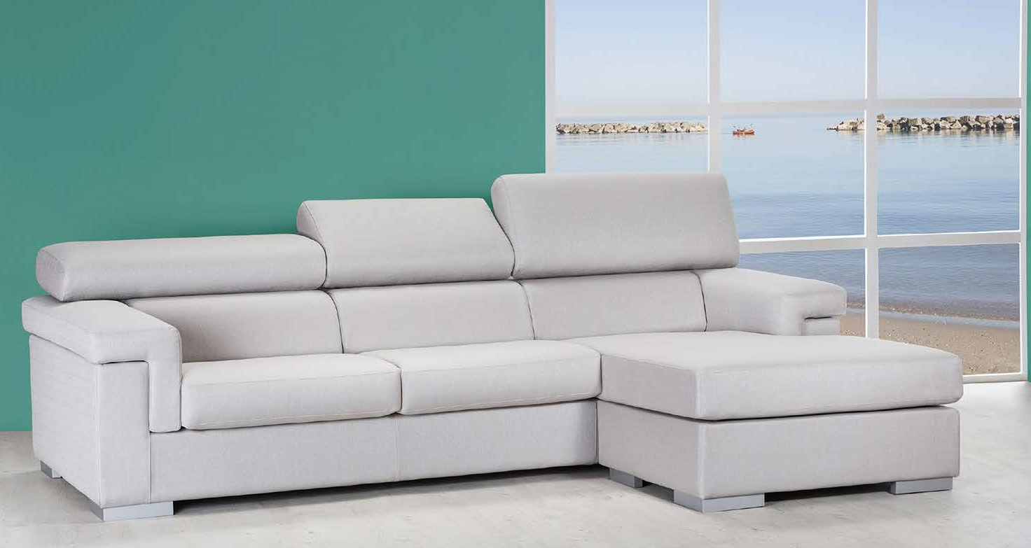3-Sitzer-Sofa, bestehend aus 2 Elementen mit Halbinsel, vollständig abnehmbarer Bezug, mit stabilem Holzrahmen und interner Federung mit hochfesten elastischen Gurten. Sitz und Rückenlehne aus hochdichtem Polyurethanschaum für hohen Komfort. Polsterung aus wasserabweisendem, leicht mit der Hand zu reinigendem Stoff aus 100% Polyester.