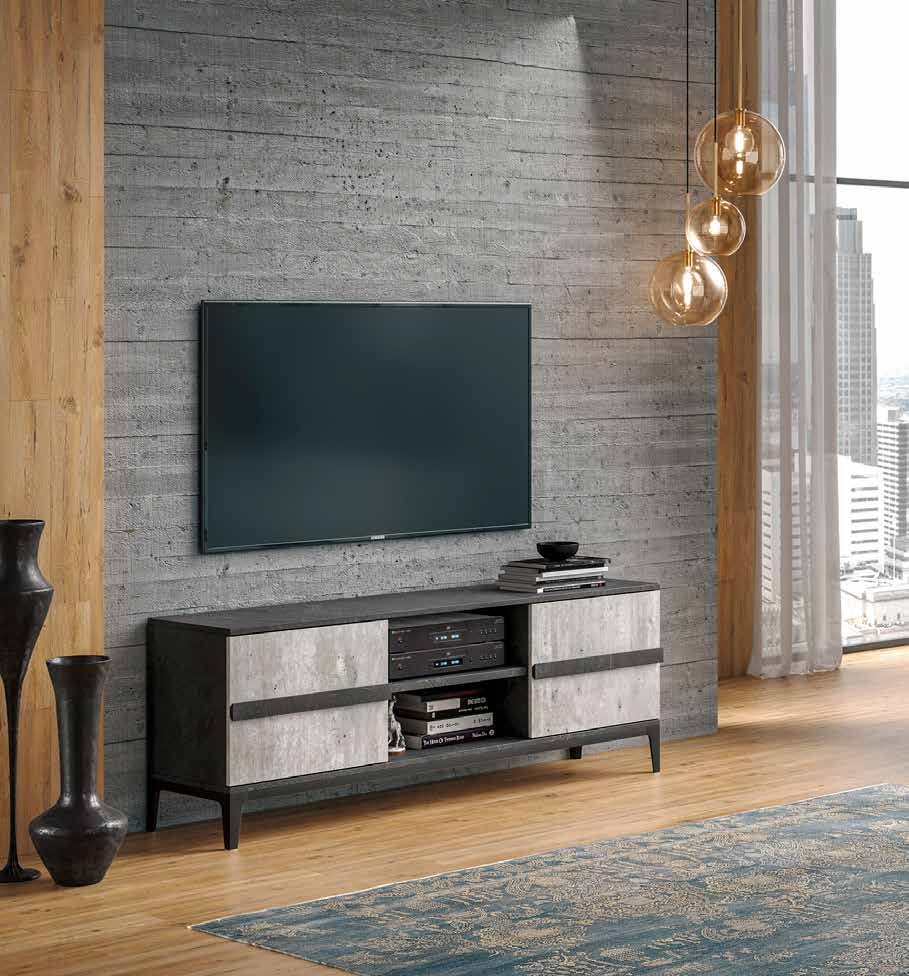 Eleganz und Funktionalität treffen sich in unserem TV-Ständer mit 2 Türen und 2 Fächern. Die Struktur in dunkler Ausführung, kombiniert mit den dunklen und zementfarbenen Fronten, schafft einen raffinierten und modernen Kontrast, der jeden Wohnbereich aufwertet. Gut organisierte Räume und essentielle Linien bieten ein Gleichgewicht zwischen Stil und Zweckmäßigkeit und machen dieses Möbelstück zum Star Ihres Wohnzimmers. Ein vielseitiges Design, das sich mit Charakter an jede Umgebung anpasst und Ästhetik und Funktionalität in einer einzigen Lösung vereint.
