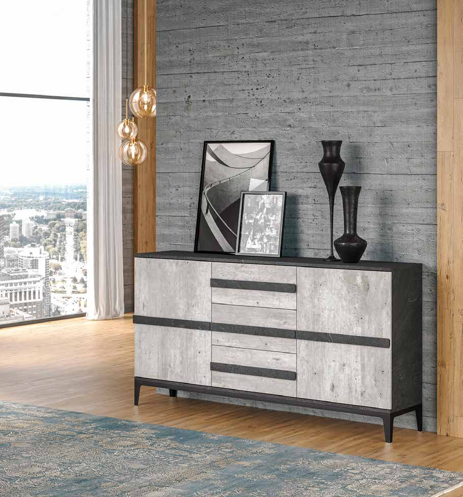 Eleganz und Funktionalität treffen sich in unserem **Madia 2 Türen und 3 Schubladen**. Mit seiner Struktur in **Dunkel**, die durch Fronten in **Dunkel und Zement** ergänzt wird, verleiht dieses Möbelstück jedem Raum Charakter und Modernität. Klare Linien, essentielles Design und hochwertige Materialien machen dieses Sideboard zur perfekten Wahl für alle, die einen zeitgenössischen Touch suchen, ohne dabei auf Funktionalität zu verzichten. Ideal, um jeden Raum in Ihrem Haus stilvoll zu organisieren.