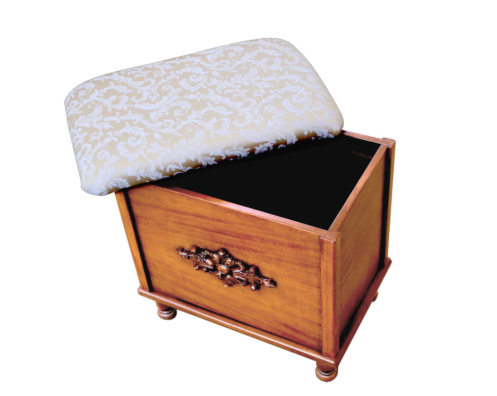 Dieser schöne Hocker bietet einen praktischen Stauraum, der auf vielfältige Weise genutzt werden kann.