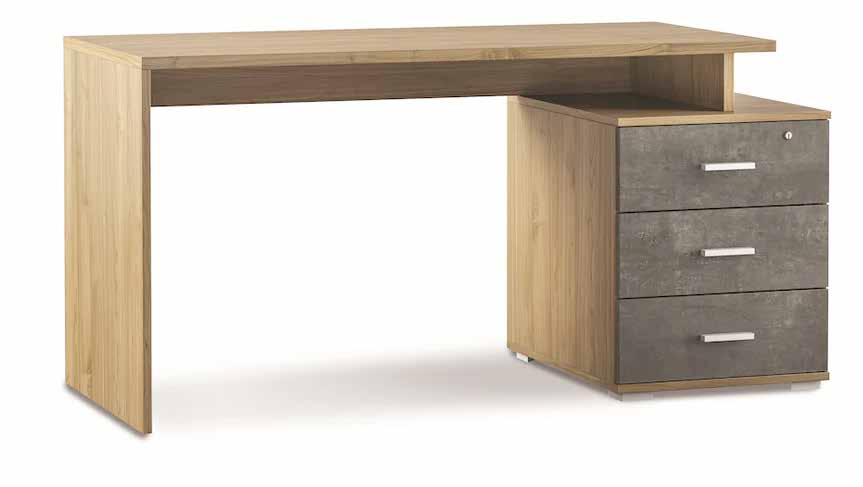 Praktischer Schreibtisch im minimalistischen Stil mit einer bequemen Tischplatte von fast 154 cm und 3 geräumigen Schubladen zur Aufbewahrung von Alltagsgegenständen, die wir im Büro oder in der Arbeitsecke verwenden. Die erste Schublade ist für zusätzliche Sicherheit mit einem Schlüsselschloss versehen.