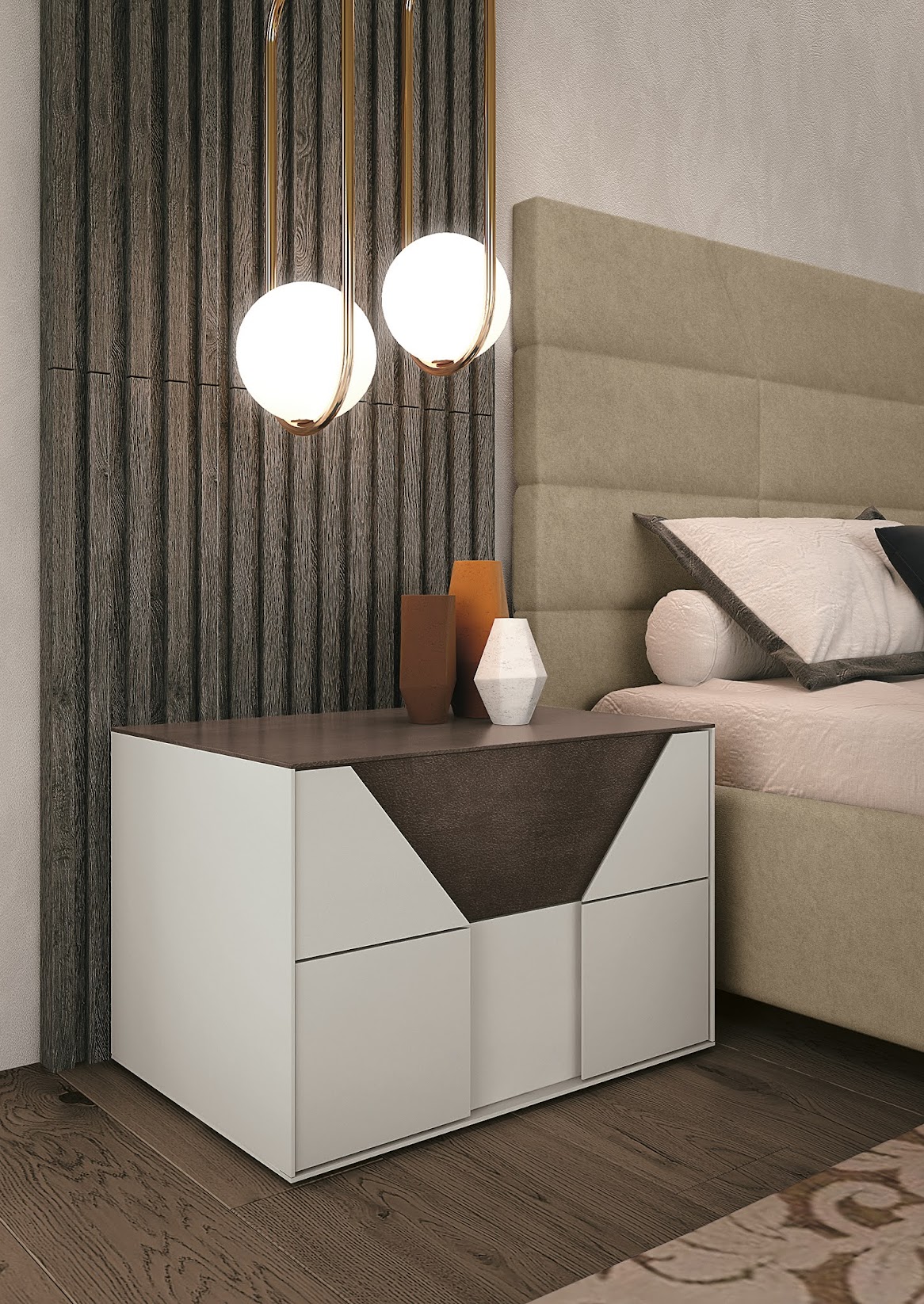 Moderner Nachttisch mit 2 Schubladen und doppelter Lackierung UN505-1
