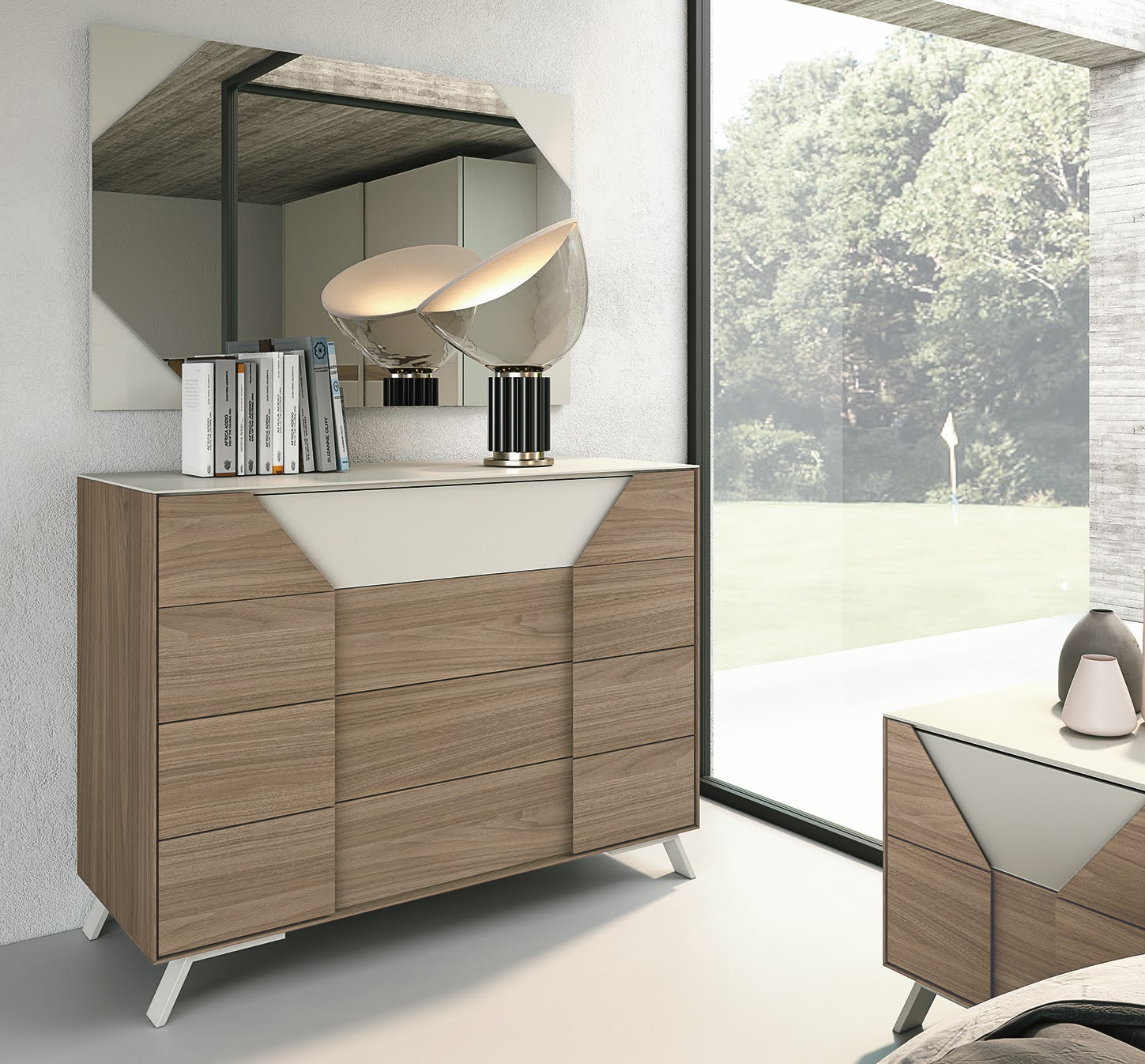 Bringen Sie Stil und Funktionalität in Ihr Schlafzimmer mit dieser modernen Kommode mit drei Schubladen, die für alle gedacht ist, die ein vielseitiges Möbelstück mit einem raffinierten Design suchen. Die Kommode ist aus massiver Spanplatte gefertigt und verfügt über zwei Melaminfurniere, die zwei moderne Oberflächen kombinieren und einen eleganten Kontrast bilden, der jeden Raum aufwertet.