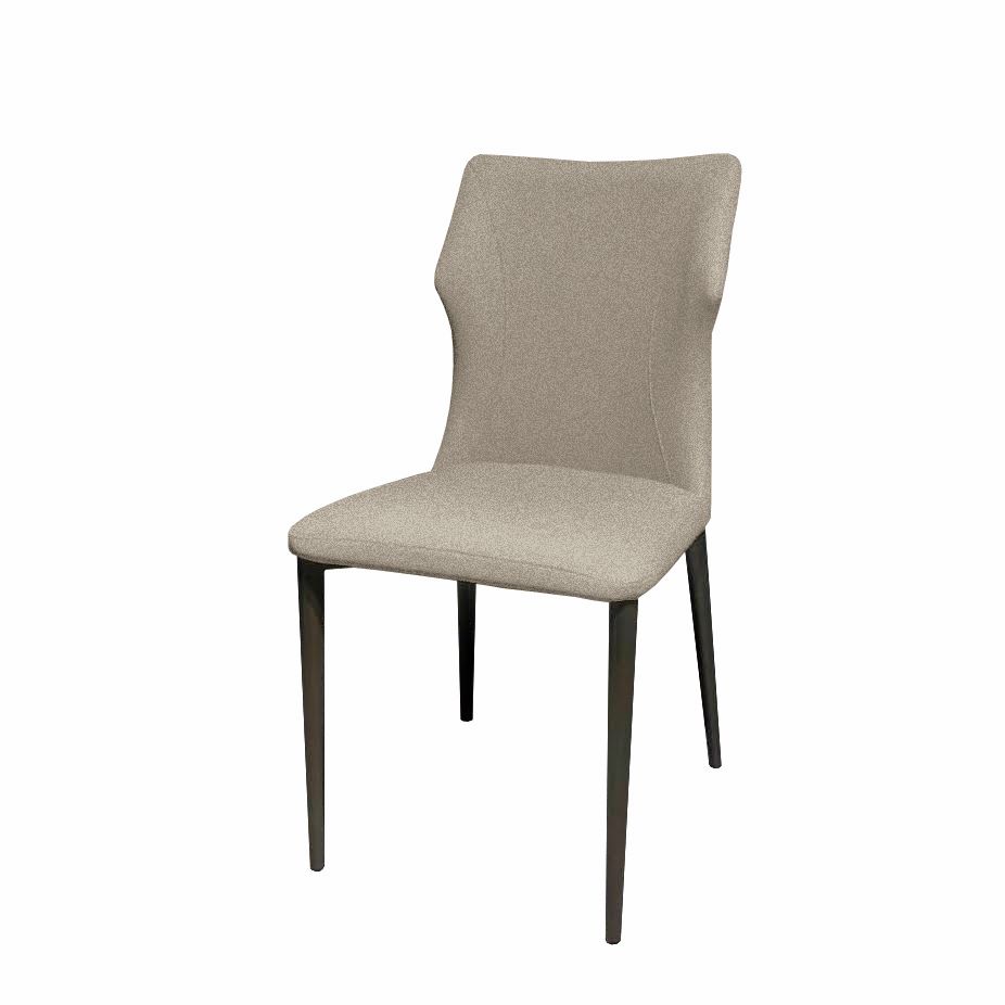 Schöner Stuhl mit massivem Eisengestell und weicher hellgrauer Stoffpolsterung.