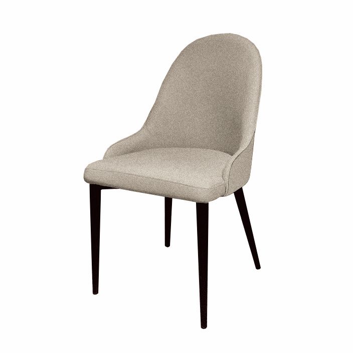 Eleganter kleiner Stuhl mit abgerundeter Rückenlehne. Die Originalität ergibt sich aus der Farbkombination: schwarzes Eisengestell und Sitz- und Rückenlehnenpolsterung aus hellgrauem Stoff. Ideal als Sessel oder Stuhl für Wohnbereiche, Schlafbereiche, Arbeitszimmer oder Wartezimmer.