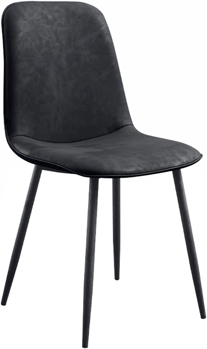 Minimalistischer Stuhl mit Gestell aus massivem Eisen und Sitz und Rückenlehne aus praktischem, dunkelfarbigem, widerstandsfähigem und leicht zu reinigendem Polyurethan.