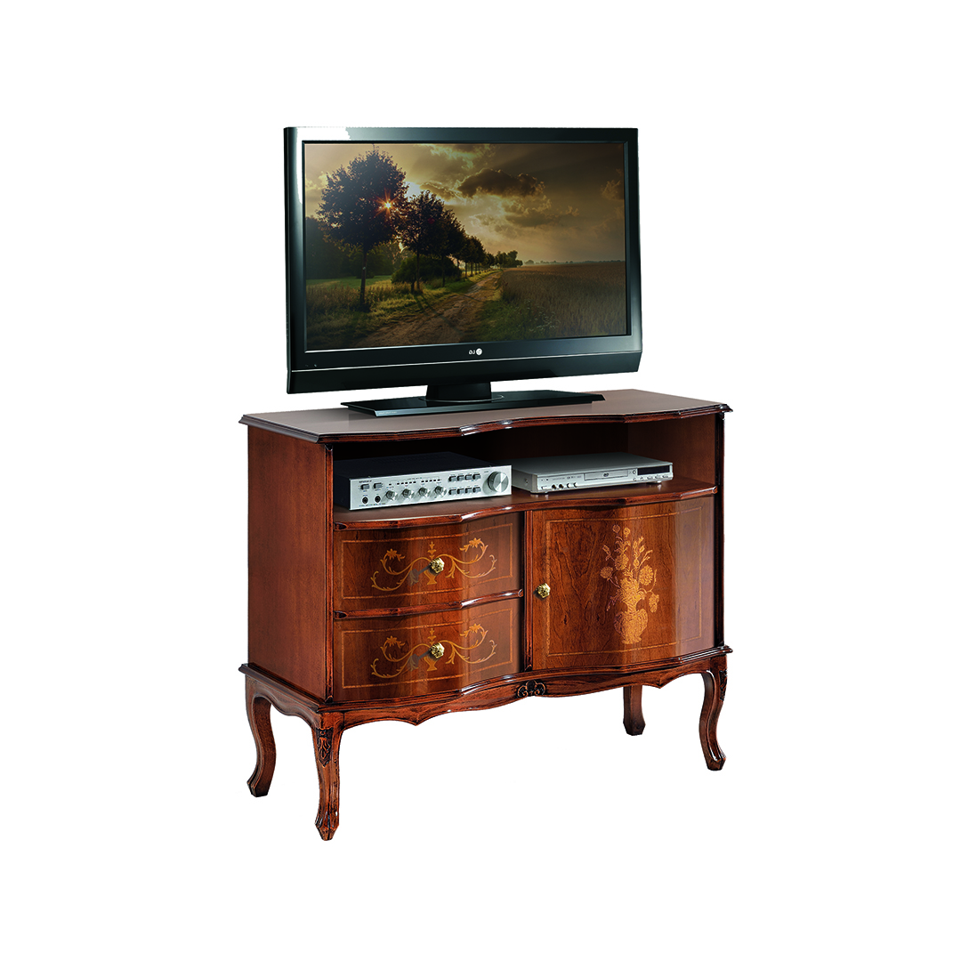 Schöner TV-Schrank im klassischen Stil mit einem schönen offenen Fach unter der Platte.