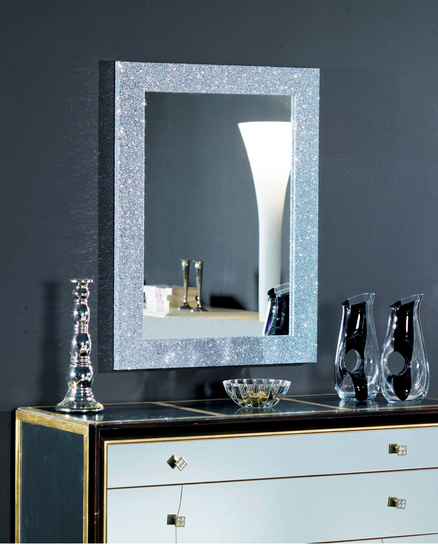 Rechteckiger Spiegel in Silber mit Glitzer