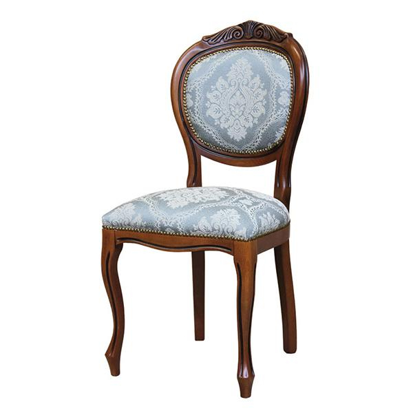 Ein klassischer Stuhl mit einer harmonisch einfachen Linie, die die schöne Schnitzerei an der Rückenlehne angemessen zur Geltung bringt. Die solide Konstruktion bietet einen hohen Sitzkomfort, der durch die große gepolsterte Rückenlehne zusätzlich unterstützt wird. Ideal für das elegante Esszimmer, dank der sorgfältigen Konstruktion auch für eine intensivere Nutzung geeignet. Der auf dem Foto abgebildete Stoff ist möglicherweise nicht verfügbar. Bitte kontaktieren Sie uns, um Informationen zu erhalten oder eine andere Konfiguration vorzunehmen. Maße: Breite cm 50 Tiefe cm 62 Höhe cm 102